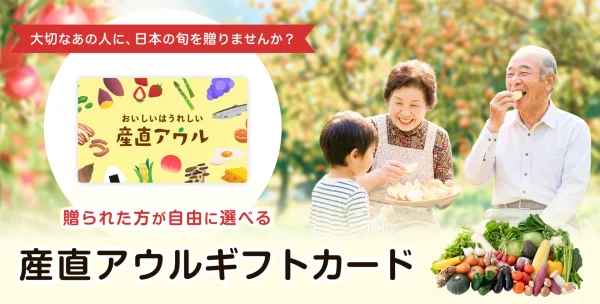 そんな中、利用者から「せっかく贈るのであれば相手の欲しいものを贈りたい」「相手のタイミングに合わせた商品を贈りたい」といった声が寄せられました。そのような方々の声にお応えすべく、贈られた方が食材やタイミングを自由に選べるオンラインギフトカード「産直アウルギフトカード」の提供を3月10日よりスタートしました。スタート以来、誕生日のプレゼントや赤ちゃんの誕生祝い、結婚のお祝いなど、大切な方への特別な日のギフトに素敵なメッセージとともにご利用いただいています。